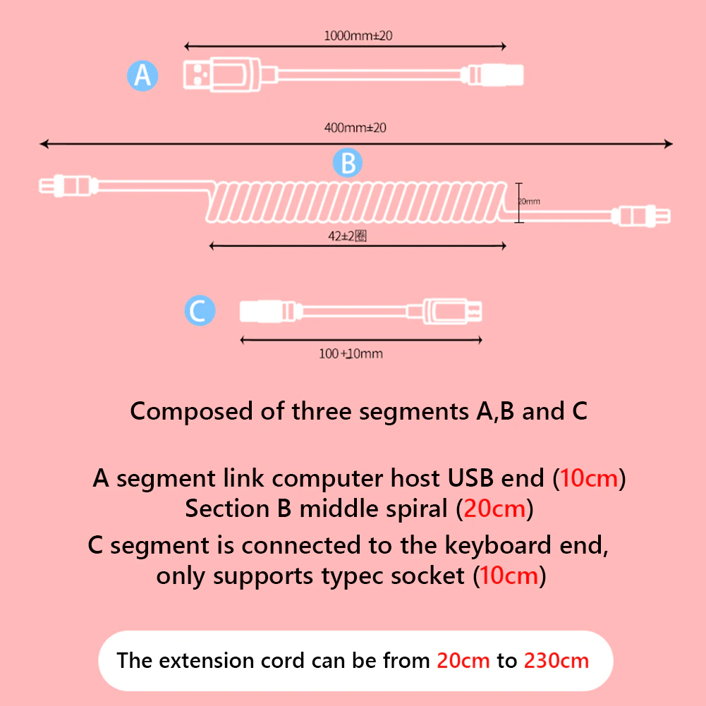 • Interface: Type-C (keyboard end) to USB-A (computer end)