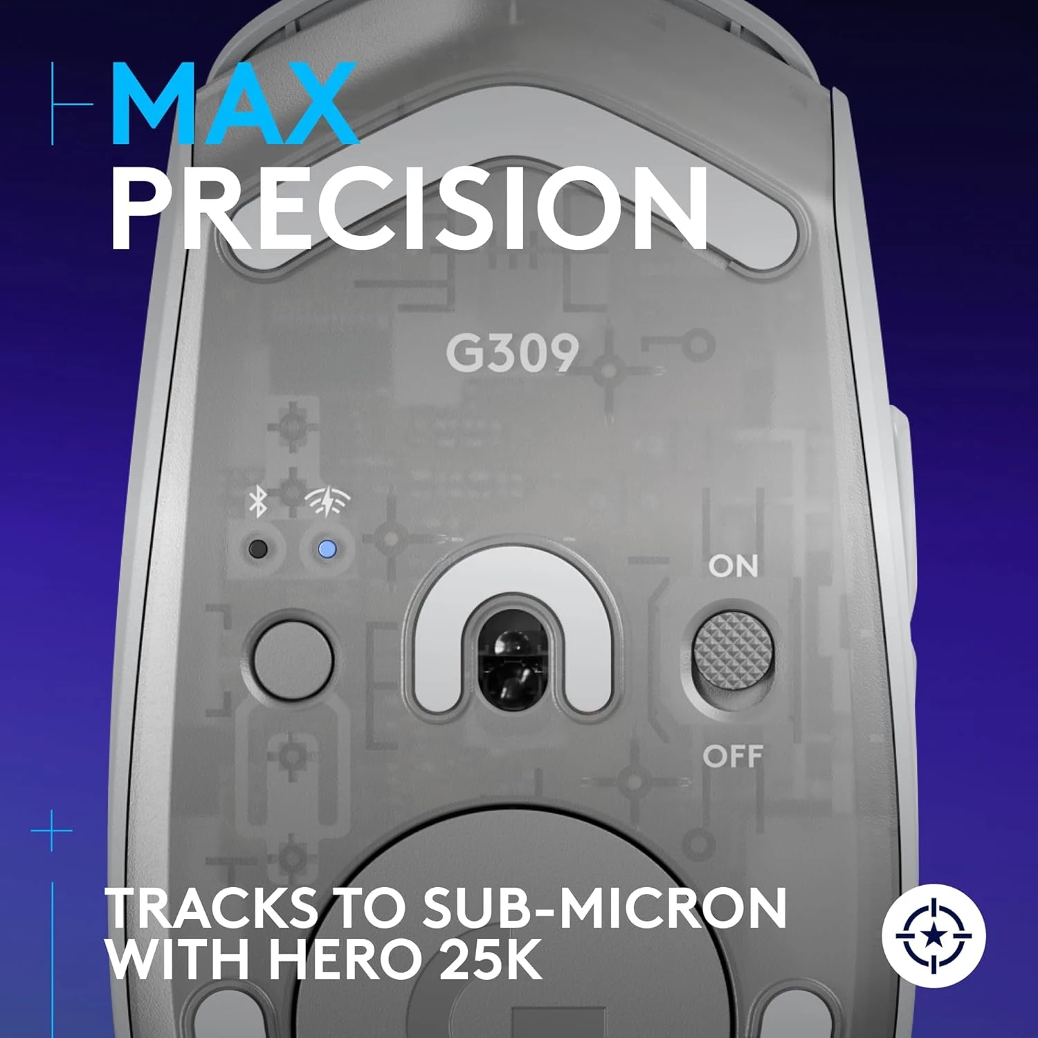 LIGHTSPEED Wireless, 1000Hz Report Rate (1ms), 250-Hour Battery Life, 99g Weight, 1 Onboard Profile, Max Acceleration 40G, Max Speed 400 IPS, PTFE Feet