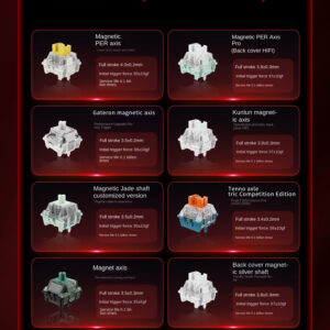 - Switch Options: Magnetic Jade Custom Switches, Sealed Magnetic Silver Switches, Magnetic King Switches, TTC Titan Magnetic Gaming Switches